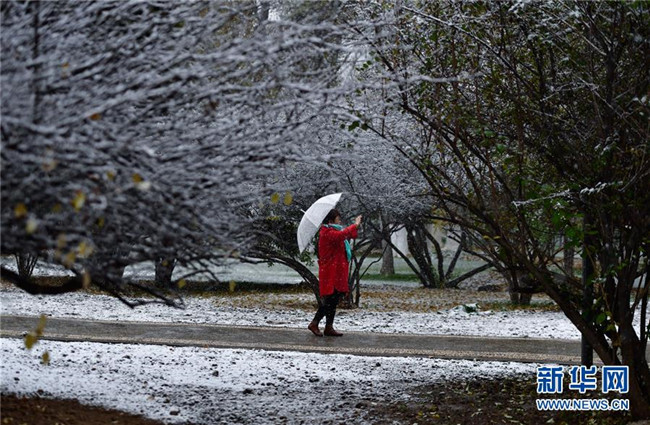 10月31日拍攝的雪中的青海省西寧市人民公園。 新華社記者張龍攝