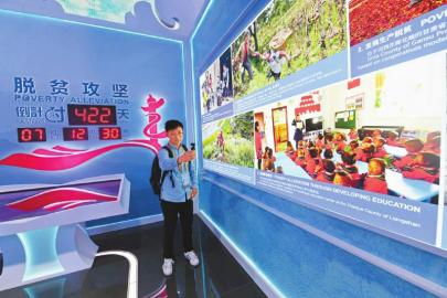 脫貧攻堅(jiān)是幸福中國的生動(dòng)詮釋。一塊脫貧攻堅(jiān)倒計(jì)時(shí)422天的標(biāo)識(shí)牌引發(fā)圍觀,展示的脫貧攻堅(jiān)8項(xiàng)主要成果中,四川占有兩席。作為教育脫貧的成果,一張照片展現(xiàn)了涼山州昭覺縣幼教點(diǎn)輔導(dǎo)員帶領(lǐng)幼兒學(xué)習(xí)普通話的場(chǎng)景;嚴(yán)把貧困退出關(guān),另一張照片則展示了第三方評(píng)估團(tuán)隊(duì)在甘孜州康定市開展貧困縣退出抽查的場(chǎng)景。