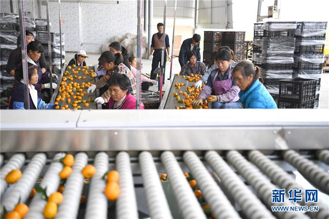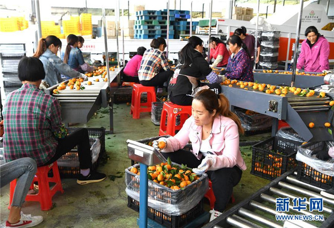 時(shí)下正是廣西鹿寨縣平山鎮(zhèn)數(shù)萬畝柑桔成熟上市的季節(jié)。據(jù)悉,2018年平山鎮(zhèn)柑桔產(chǎn)值3.29億元,隨著當(dāng)?shù)馗探鄯N植面積不斷擴(kuò)大,柑桔產(chǎn)業(yè)成為村民脫貧致富的重要產(chǎn)業(yè)。 新華社記者 周華 攝