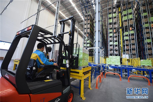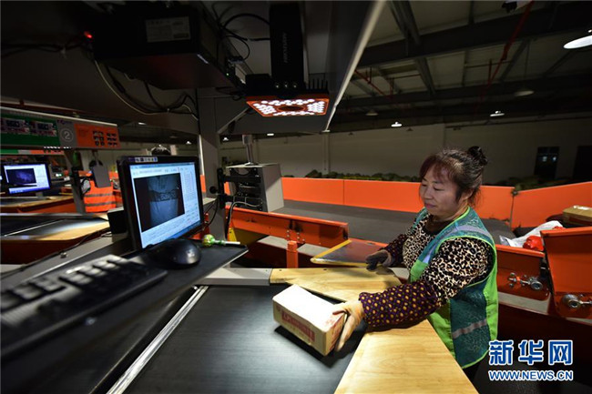 工作人員在南京市雨花經(jīng)濟開發(fā)區(qū)一家智慧物流基地內忙碌(2016年11月3日攝)。該物流基地建筑面積達20多萬平方米,可存儲商品2000萬件,日處理包裹181萬件。整個物流基地實現(xiàn)全流程自動作業(yè),從訂單生成到商品出庫,最快可縮短到30分鐘。新華社發(fā)