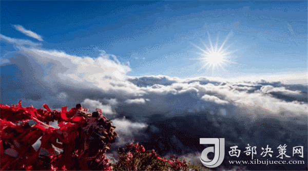 夜幕自東方悄然隱退,晨曦初露,漸漸霞光瑰麗,云源奔涌。瞬間,一輪火球噴薄而出,繼而光芒四射,氣象萬千,整個(gè)世界大放光明,現(xiàn)場的游人身心為之一振。待云霧散盡,蒼松翠柏,則更加清麗悅目,美妙神奇。