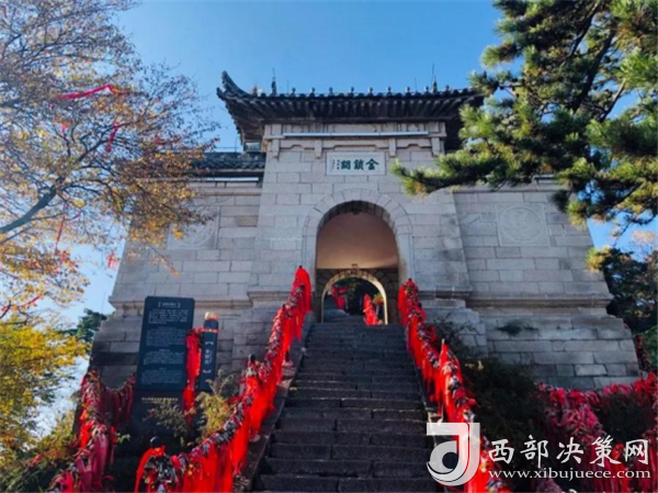 金鎖關(guān)是建在三峰口的一座城樓般石拱門,是經(jīng)五云峰通往東、西、南、中四峰的咽喉要道,鎖關(guān)后則無路可通,所以又稱為通天門。關(guān)內(nèi)關(guān)外登山路兩側(cè)鐵索上掛滿的情侶鎖、平安鎖重重疊疊,紅繩彩線迎風(fēng)搖曳,也是關(guān)前一道美麗的風(fēng)景。