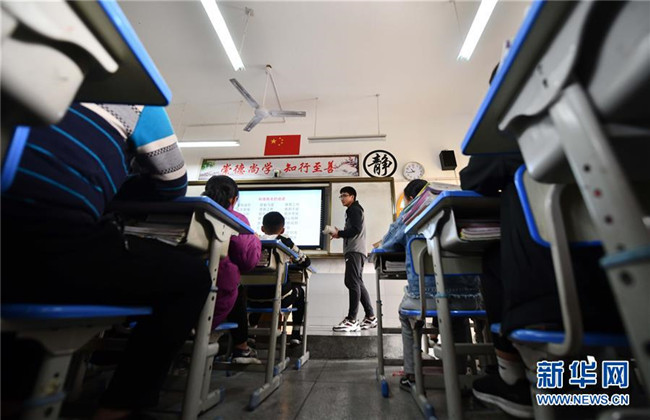 12月5日,在廣西融水苗族自治縣思源實驗學(xué)校,徐晨曦在上課。徐晨曦是西北工業(yè)大學(xué)的在讀碩士研究生,今年9月來到融水苗族自治縣思源實驗學(xué)校,擔(dān)任班主任。 新華社記者 黃孝邦 攝