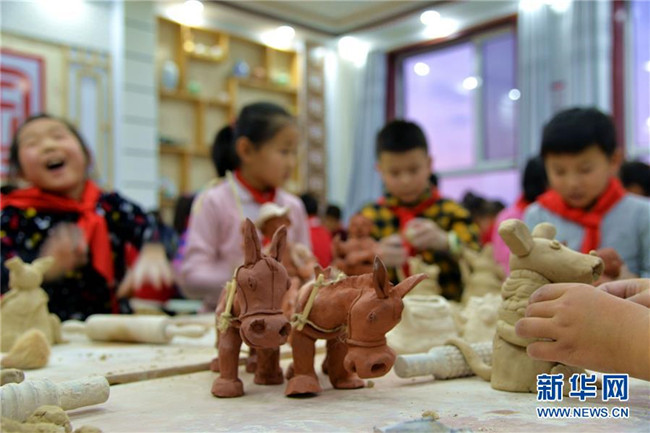 12月16日,清水河縣城關(guān)鎮(zhèn)第一小學(xué)學(xué)生在制作陶器。新華社記者 徐欽 攝