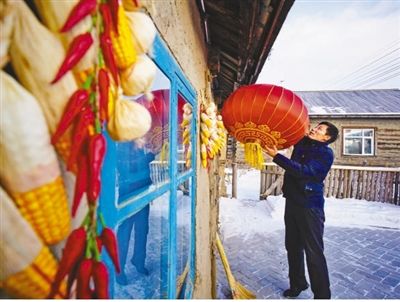 趙民興在給村里的客棧掛燈籠。劉心楊攝