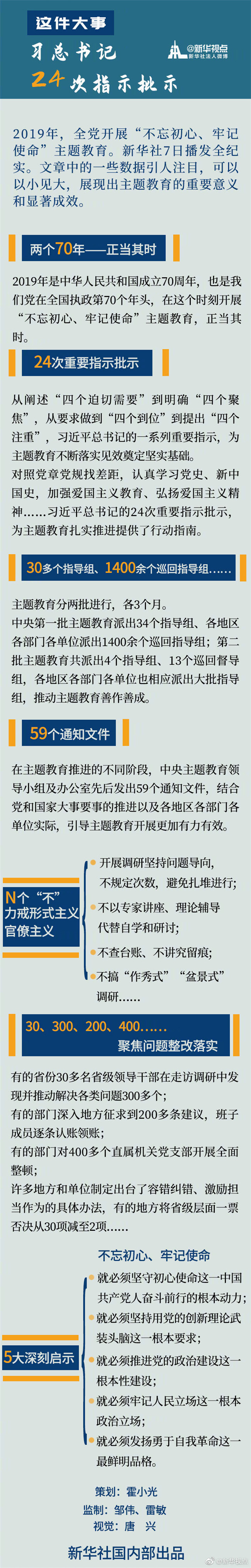 對(duì)照黨章黨規(guī)找差距,認(rèn)真學(xué)習(xí)黨史、新中國史,加強(qiáng)愛國主義教育、弘揚(yáng)愛國主義精神……習(xí)近平總書記的24次重要指示批示,為主題教育扎實(shí)推進(jìn)提供了行動(dòng)指南。