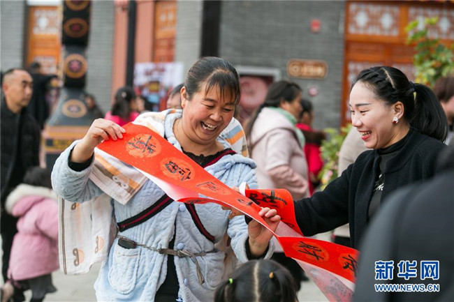 當(dāng)日,貴州省畢節(jié)市2020年迎新春“我們的中國夢”文化進萬家惠民系列活動在大方縣易地扶貧搬遷集中安置區(qū)奢香古鎮(zhèn)舉行。文化志愿者用小品、歌舞、義寫春聯(lián)、拍“全家福”等形式為搬遷群眾帶來了一場精彩的文化“盛宴”,讓易地扶貧搬遷安置點充滿濃濃的年味。