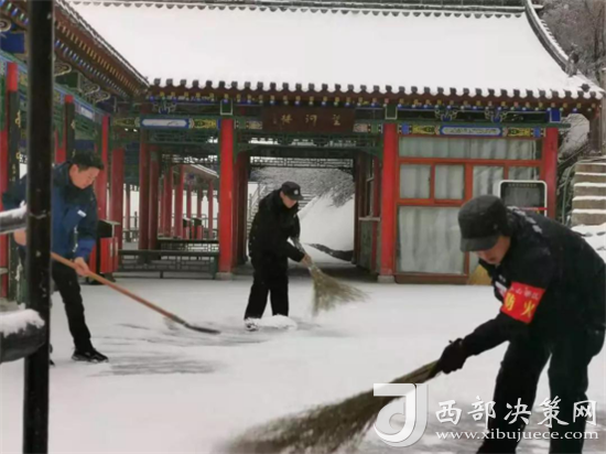 此次降雪持續(xù)時間長,降雪量大,清掃過程以主要道路為重點(diǎn),快速對路面積雪進(jìn)行清掃,確保天亮后游客能夠安全游覽景區(qū)。
