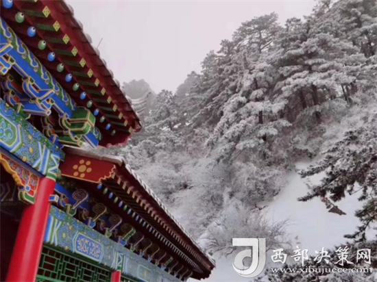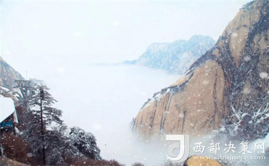 白雪與蒼翠的華山奇松、靈動(dòng)的云海交相輝映,