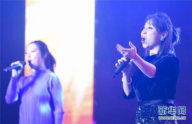 1月12日,中央歌劇院文藝小分隊(duì)志愿者、女高音歌唱家夏羽(右)和蔡楠在慰問演出上演唱《我愛你中國》。新華社記者 王全超 攝