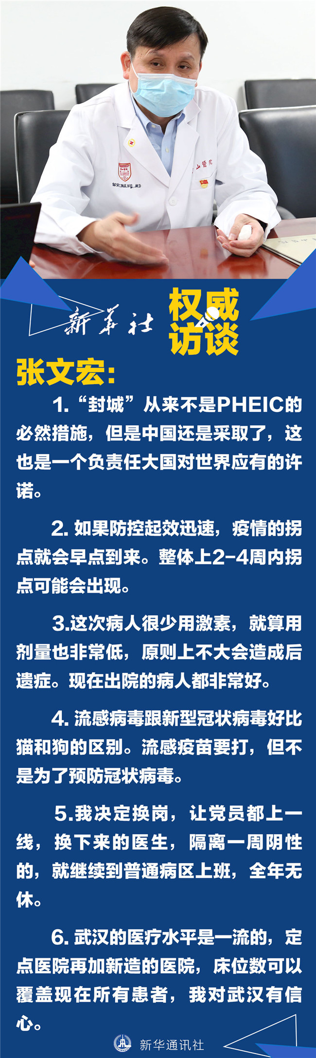 近日,上海醫(yī)療救治專家組組長、復(fù)旦大學(xué)附屬華山醫(yī)院感染科主任張文宏面對(duì)記者采訪說的這些話,使他成為網(wǎng)民心中的“硬核”醫(yī)生。1月31日,張文宏在接受新華社記者的專訪時(shí)表示,疫情來了,堅(jiān)守崗位是醫(yī)生的職責(zé)所在。