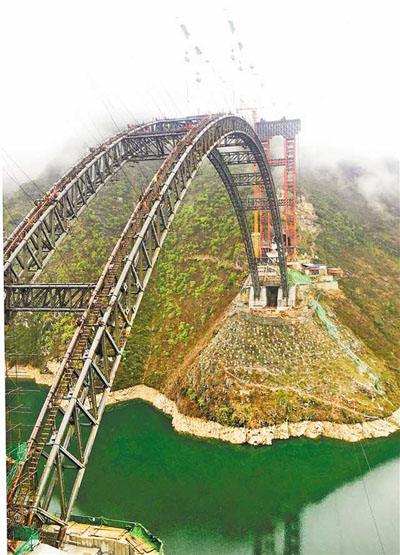 2月28日,鄭萬高鐵巫山段大寧河雙線大橋正式復工建設(shè)。在建設(shè)現(xiàn)場,工人們有的在裝卸建材,有的在大橋鋼管拱肋上作業(yè)。通訊員 盧先慶 攝