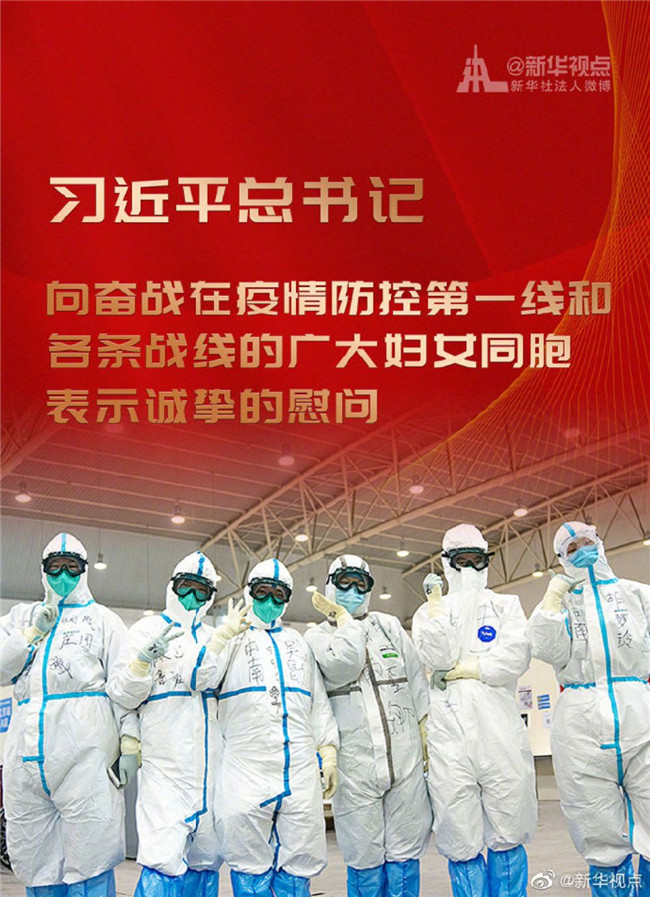 習(xí)近平向奮戰(zhàn)在疫情防控第一線和各條戰(zhàn)線的廣大婦女同胞表示誠(chéng)摯的慰問(wèn)
