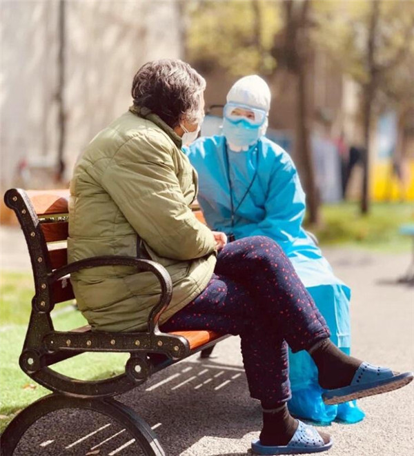 8艙有一位80多歲的老奶奶,中午出來遛彎時看到了醫(yī)療隊護(hù)士萬珍妮,主動過來攀談。“你是陜西來的?我看你衣服上寫著西安幾個字了。”“是啊,奶奶,我們是西安國際醫(yī)學(xué)中心醫(yī)院來武漢支援的。”萬珍妮通過和奶奶聊天得知,奶奶的父親以前在寶雞工作過很長時間。“我也算半個陜西人了。沒想到在這里還能見到“老鄉(xiāng)”!感謝你們!”奶奶感覺很親切,和萬珍妮話起了“家常”。