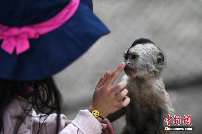 資料圖:3月21日,一名兒童隔著玻璃與一只幼猴互動(dòng)。當(dāng)日,云南野生動(dòng)物園正式恢復(fù)開放。中新社記者 康平 攝