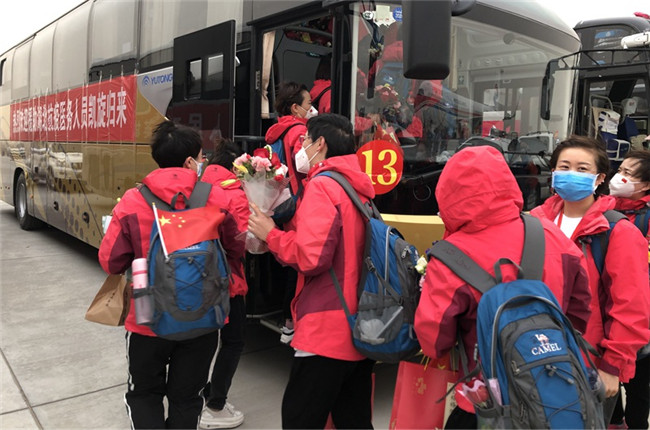 今天下午,載有寧夏第五批、第六批援湖北醫(yī)療隊(duì)隊(duì)員的包機(jī)降落在銀川河?xùn)|國(guó)際機(jī)場(chǎng)。今日撤離隊(duì)伍共有323人返回,其中320人乘機(jī)返回,3人駕駛緊急救援車返回?;貙幒螅麽t(yī)療隊(duì)醫(yī)務(wù)人員將分別由五市接回,在指定酒店接受14天醫(yī)學(xué)隔離。據(jù)了解,疫情以來,寧夏陸續(xù)派出六批援湖北醫(yī)療隊(duì)隊(duì)員共計(jì)785人,目前仍有8名疾控中心流調(diào)人員繼續(xù)在武漢、潛江支援。
