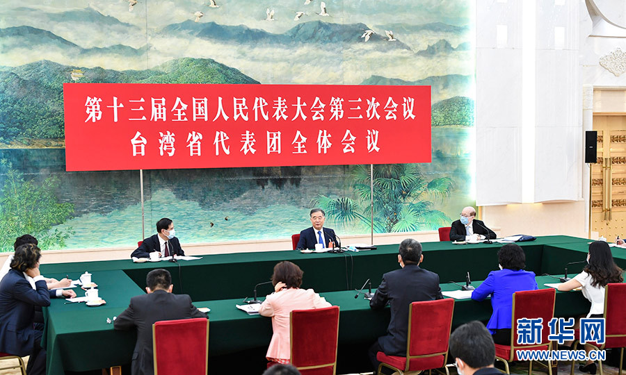 汪洋在臺灣代表團(tuán)參加審議。在認(rèn)真聽取陳軍、許沛、曾力群等代表發(fā)言后,汪洋指出,兩岸關(guān)系和平發(fā)展符合中華民族根本利益,也是兩岸同胞的共同心愿。要深入學(xué)習(xí)領(lǐng)會習(xí)近平總書記關(guān)于對臺工作的重要論述,認(rèn)真貫徹落實黨中央決策部署,堅持“和平統(tǒng)一、一國兩制”基本方針,堅持體現(xiàn)一個中國原則的“九二共識”,強(qiáng)化塑造反“獨”促統(tǒng)大勢,堅決遏制任何形式的“臺獨”分裂活動,防范化解臺海重大風(fēng)險。要秉持“兩岸一家親”理念,落實落細(xì)各項惠臺利民舉措,有針對性地幫助臺資企業(yè)克服疫情影響、恢復(fù)發(fā)展活力,支持臺企臺商參與“新基建”和拓展內(nèi)銷市場,進(jìn)一步為臺灣同胞特別是青年一代在大陸學(xué)習(xí)、創(chuàng)業(yè)、就業(yè)、生活創(chuàng)造更好條件,促進(jìn)心靈契合。