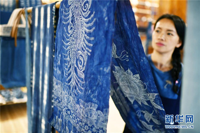 2018年,楊成蘭在村里成立傳統(tǒng)織染合作社,吸引村里及周邊村寨貧困戶入股,帶動(dòng)當(dāng)?shù)刎毨艉痛迕窦尤牒献魃纾瑥氖驴棽?、染布、藍(lán)靛種植等產(chǎn)業(yè),在傳承民族傳統(tǒng)手工技藝的同時(shí),幫助村民脫貧增收。