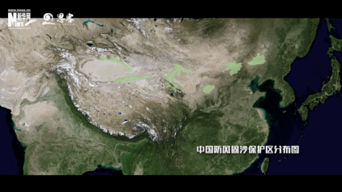 ▲中國防風(fēng)固沙保護(hù)區(qū)分布圖