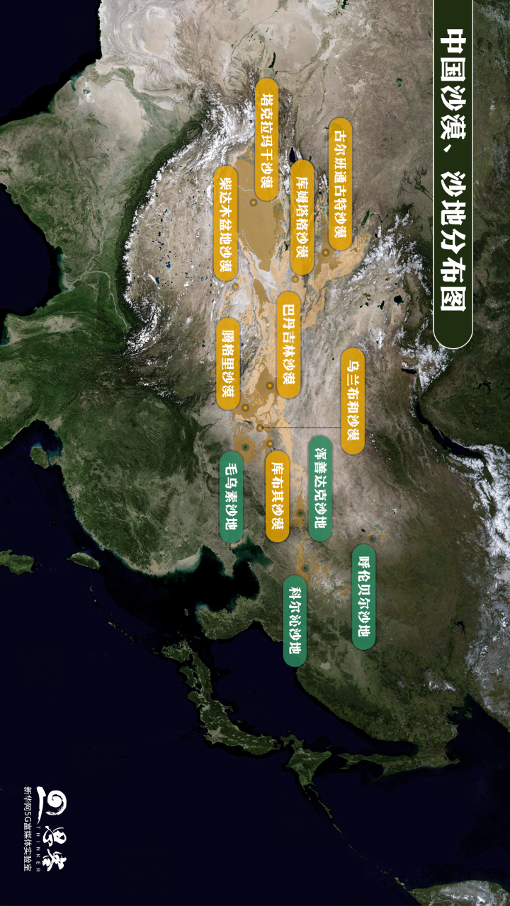 ▲中國沙漠、沙地分布圖