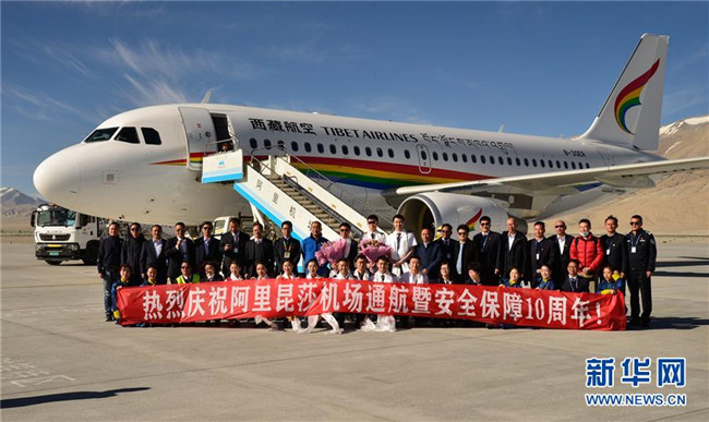 7月1日9點52分,西藏航空TV6008客機降落阿里昆莎機場,西藏阿里昆莎機場迎來通航10周年。 2010年7月1日,阿里昆莎機場正式通航,從此天塹變坦途。通航10年間,昆莎機場已累計保障航班起降7169架次,運輸旅客491367人次,運輸物資365噸。