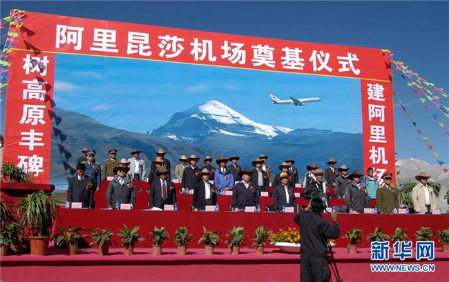 2007年7月29日,阿里昆莎機場奠基開工。 新華社發(fā)