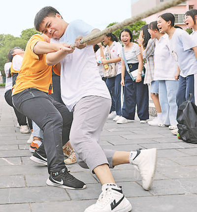 6月28日,湖南省道縣第一中學(xué)高三學(xué)生在進(jìn)行拔河比賽放松心情。何紅福攝(人民視覺)