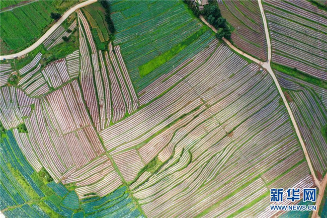 7月14日在貴州省畢節(jié)市威寧縣草海鎮(zhèn)中海村拍攝的蔬菜基地(無人機(jī)照片)。新華社發(fā)(羅大富 攝)