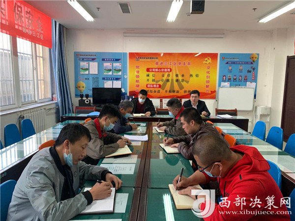 西部決策網(wǎng)訊(記者王瑞鵬 通訊員 張文剛)“同志們,我有幸參加標(biāo)準(zhǔn)化黨支部建設(shè)督導(dǎo)組在綜采三工區(qū)黨支部現(xiàn)場會,會場采用提問+答疑+講解的方式,抽查了黨支部書記、支委委員、黨員對“三會一課”、主題黨日等組織生活、機(jī)構(gòu)設(shè)置應(yīng)知應(yīng)會內(nèi)容的掌握,以及標(biāo)準(zhǔn)化建設(shè)實(shí)施意見具體工作要求的學(xué)習(xí)貫徹,按照標(biāo)準(zhǔn)化要求,我們支部的工作還有從在很多不足,差距還很大,只有大家共同努力一起進(jìn)步……”在周三政治理論學(xué)習(xí)會上,掘進(jìn)三工區(qū)支部書記對新鮮“出爐”的《黨支部標(biāo)準(zhǔn)化建設(shè)實(shí)施意見(試行)》進(jìn)行了詳細(xì)解讀。