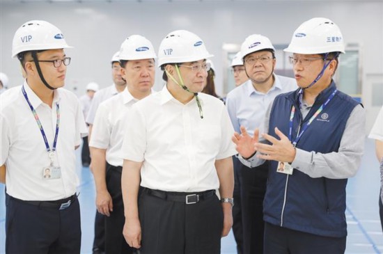 7月21日,省委書(shū)記胡和平到部分外資企業(yè)調(diào)研并召開(kāi)座談會(huì)。圖為他在三星(中國(guó))半導(dǎo)體公司閃存芯片二期項(xiàng)目現(xiàn)場(chǎng)聽(tīng)取項(xiàng)目規(guī)劃介紹。 本報(bào)記者 張辰攝