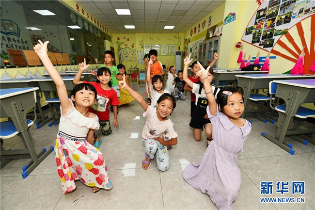 8月13日,貴州省思南縣雙塘街道麗景社區(qū)易地扶貧搬遷安置點的孩子們在上音樂課。新華社記者 楊文斌 攝