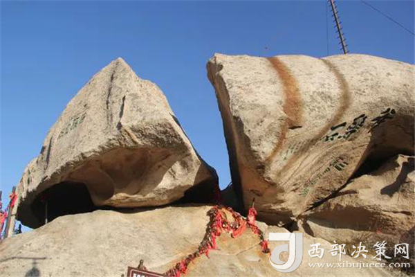來(lái)到北峰,不可不提的自然是華山論劍了,在峰頂有一塊石牌,上面是金庸先生親筆題寫(xiě)的“華山論劍”,此處也成為游客登臨華山必到之處。