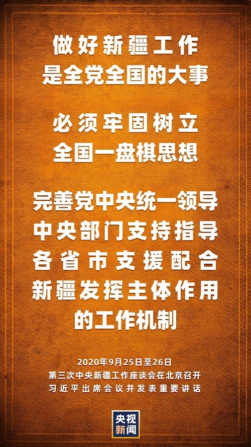 第三次中央新疆工作座談會9月25日至26日在北京召開。中共中央總書記、國家主席、中央軍委主席習(xí)近平出席會議并發(fā)表重要講話。