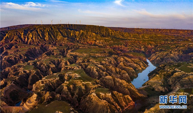 靖邊縣龍洲鎮(zhèn)波浪谷丹霞景區(qū)晨景(9月24日攝,無(wú)人機(jī)照片)。新華社記者 陶明 攝
