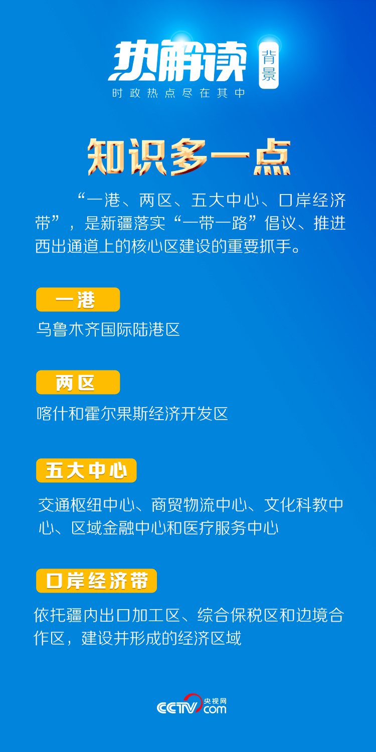 ——依托“一港、兩區(qū)、五大中心、口岸經(jīng)濟(jì)帶”,新疆著力打造向西開放的橋頭堡。