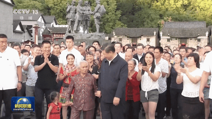 離村時,在村民和游客的簇?fù)硐?,總書記牽著一位老鄉(xiāng)的手,邊走邊不時低頭詢問,笑聲、歡呼聲、掌聲回蕩在這個幸福村落。