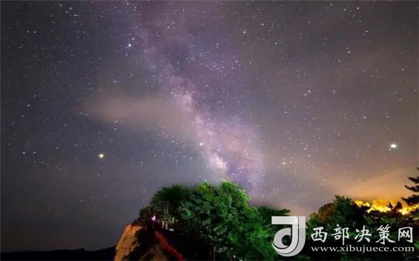 夜色華山,是一幅時(shí)間與空間的交錯(cuò),而其中最吸引人的是華山最美三色的變幻,那就是:賞星空、觀日出、看山色。繁多的星光,滿山的燈光,將華山映襯得一派柔和,這里的夜屏蔽了城市的喧囂與繁華,有著不屬于城市的寧靜與美麗。