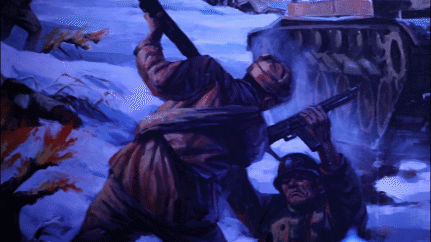 戰(zhàn)士們爬上光禿禿的山包,還未修筑工事,便與美軍打了個“照面”。面對敵方黑壓壓的坦克群和步兵部隊,3連視死如歸——排長犧牲了班長上、班長犧牲了戰(zhàn)士主動接替......最后,就連通信員和炊事員也參加了戰(zhàn)斗。