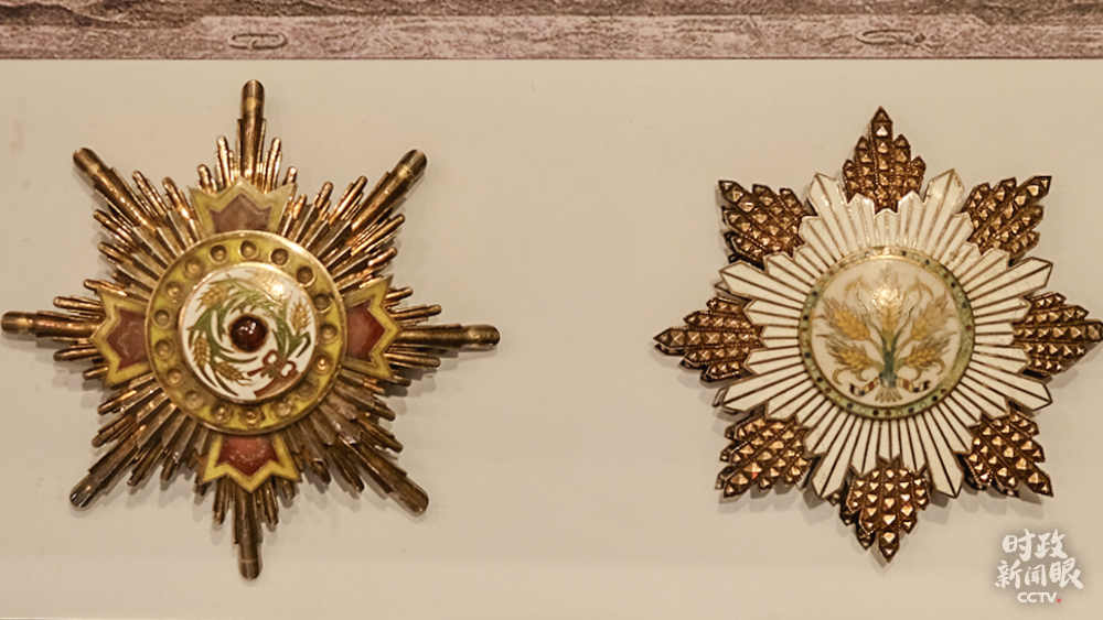 △這是民國(guó)政府頒授給張謇的寶光嘉禾勛章(左)和嘉禾勛章(右),以表彰他在實(shí)業(yè)、教育等方面的救國(guó)主張和實(shí)踐。(總臺(tái)央視記者彭漢明拍攝)