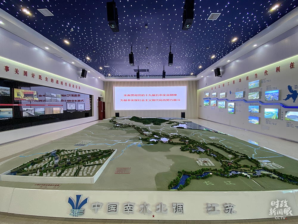 △江都水利樞紐展廳中的“南水北調(diào)東線工程”沙盤(pán)展示(總臺(tái)央視記者彭漢明拍攝)