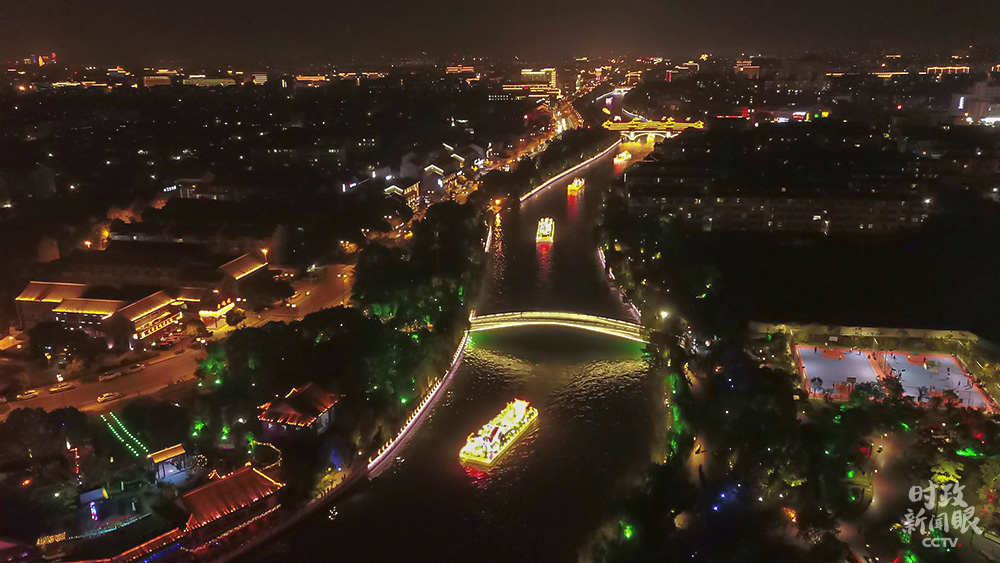 △揚(yáng)州古運(yùn)河兩岸流光溢彩