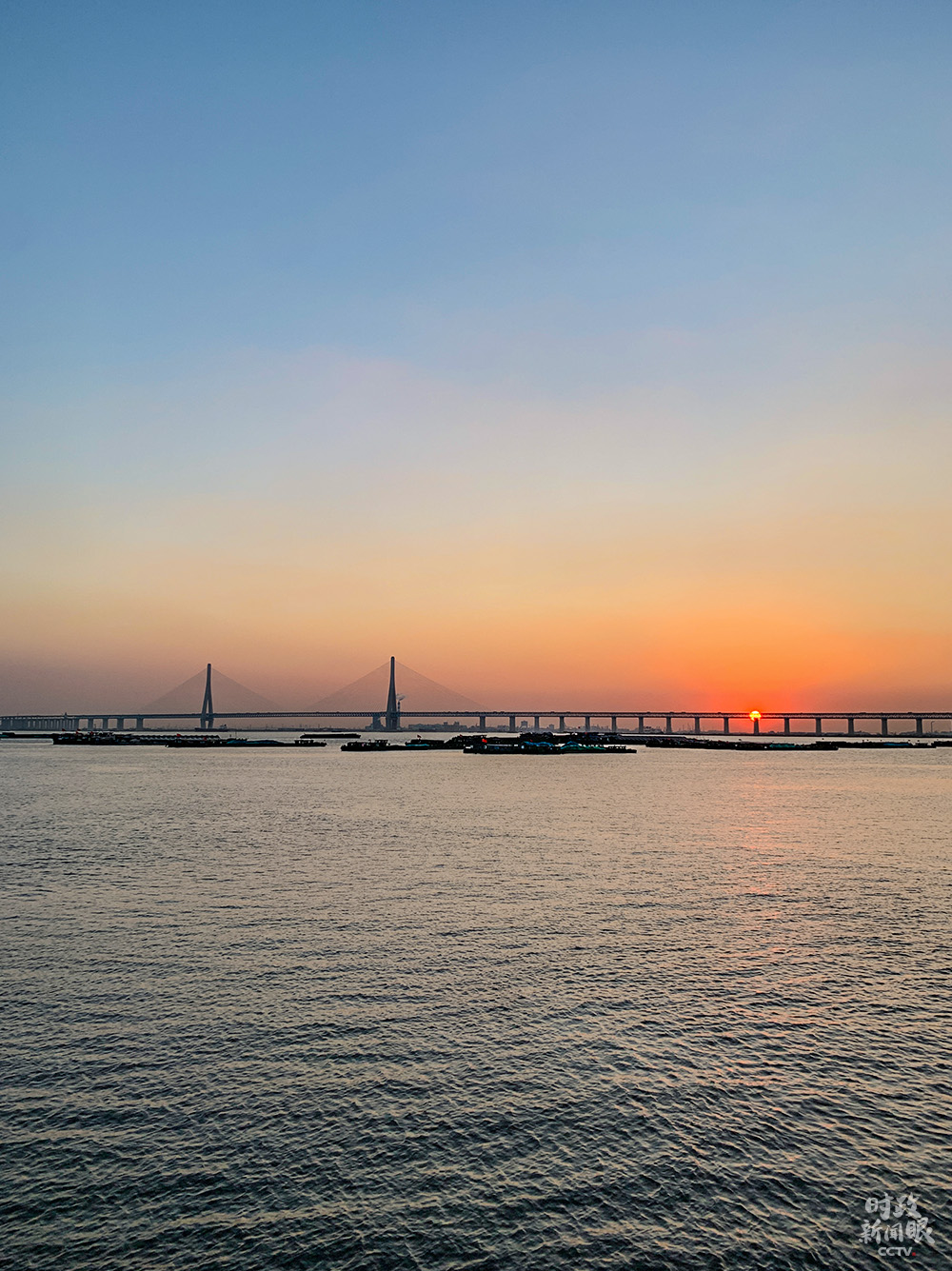 △位于南通市的滬蘇通長(zhǎng)江公鐵大橋(總臺(tái)央視記者楊新禹拍攝)