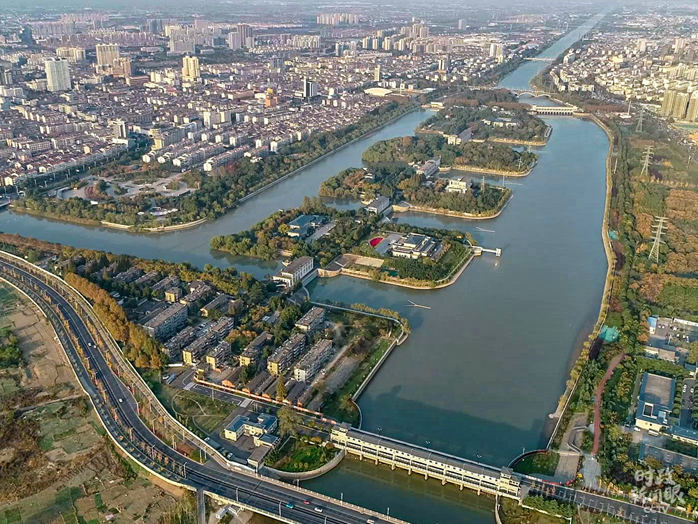 △俯瞰江都水利樞紐(總臺(tái)央視記者徐靖煒、馬敏杰拍攝)