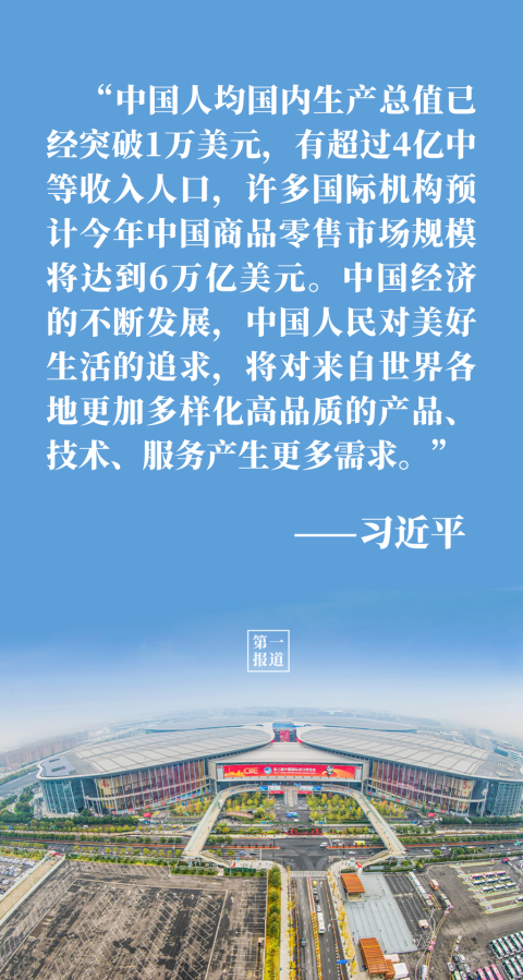 “中國的發(fā)展離不開世界,世界的繁榮也需要中國。”談到中國大市場(chǎng)蘊(yùn)藏的大機(jī)遇,習(xí)主席用事實(shí)和數(shù)據(jù)說話: