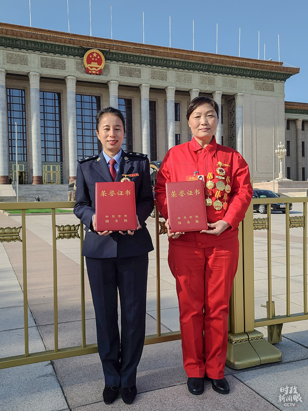 △全國勞動模范劉麗(右)與全國先進工作者劉雙燕(左)(總臺央視記者趙化拍攝)