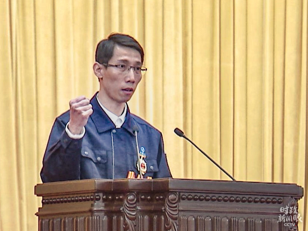 今年獲得全國勞動模范稱號的洪家光,代表所有受表彰者上臺宣讀倡議書。
