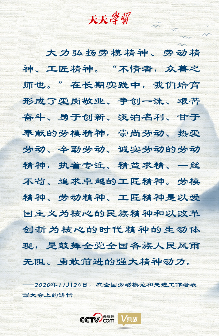 在講話中,習(xí)近平總書記還用“不惰者,眾善之師也”這句古語,深刻詮釋勞模精神、勞動(dòng)精神、工匠精神的實(shí)質(zhì),指出勞模精神、勞動(dòng)精神、工匠精神是以愛國主義為核心的民族精神和以改革創(chuàng)新為核心的時(shí)代精神的生動(dòng)體現(xiàn),是鼓舞全黨全國各族人民風(fēng)雨無阻、勇敢前進(jìn)的強(qiáng)大精神動(dòng)力。