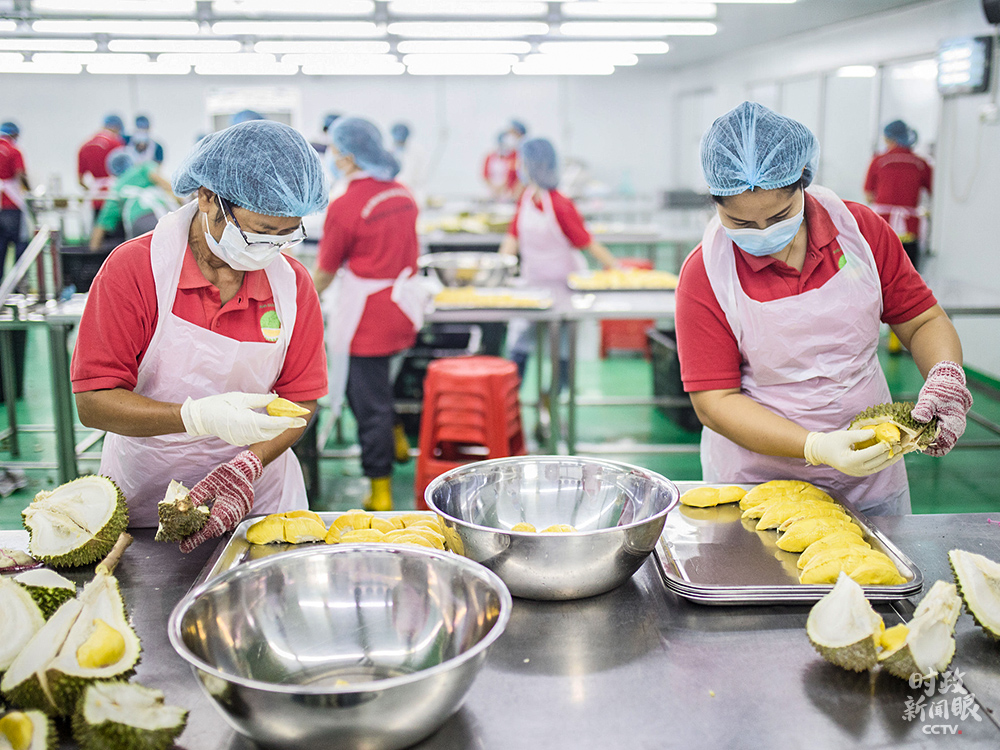 △這是馬來西亞某榴蓮加工廠,通過電商平臺銷往中國。