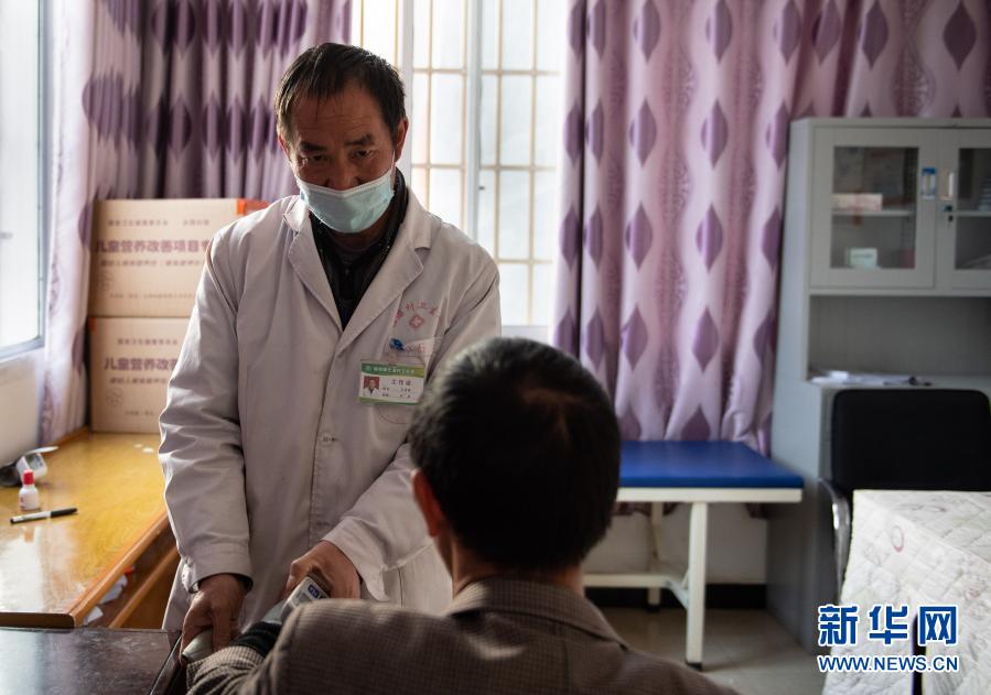 云南省鎮(zhèn)雄縣場(chǎng)壩鎮(zhèn)巴溜村衛(wèi)生室醫(yī)生在為村民檢查血壓(11月14日攝)。新華社記者 王冠森 攝