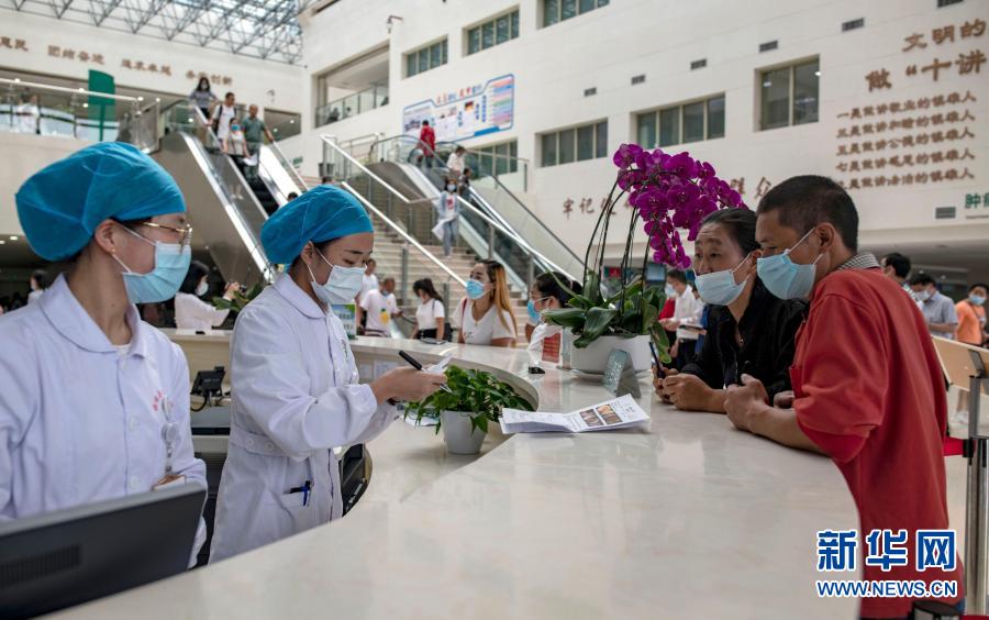 病人在云南省鎮(zhèn)雄縣人民醫(yī)院就醫(yī)。鎮(zhèn)雄縣人民醫(yī)院與四川大學(xué)華西醫(yī)院聯(lián)合辦醫(yī),是云南縣級(jí)少有的三級(jí)綜合醫(yī)院(8月11日攝)。新華社記者 江文耀 攝